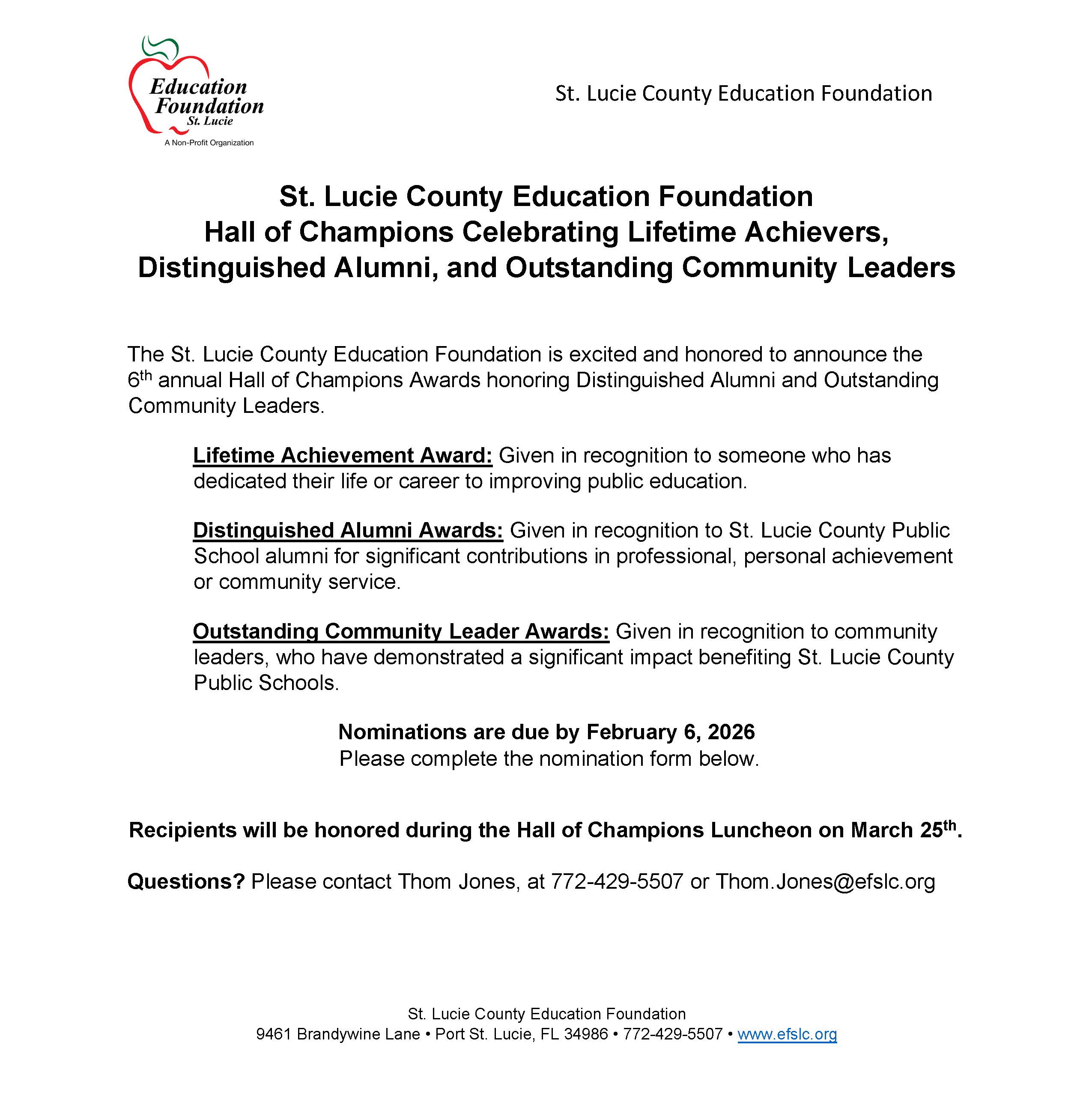 Hall of Champions recognizes individuals and organizations that have made an impact on public education in St. Lucie County.